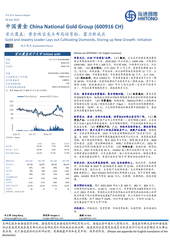 【海通国际】【20220926】中国黄金-600916-首次覆盖:黄金珠宝龙头布局培育钻,蓄力新成长-30页