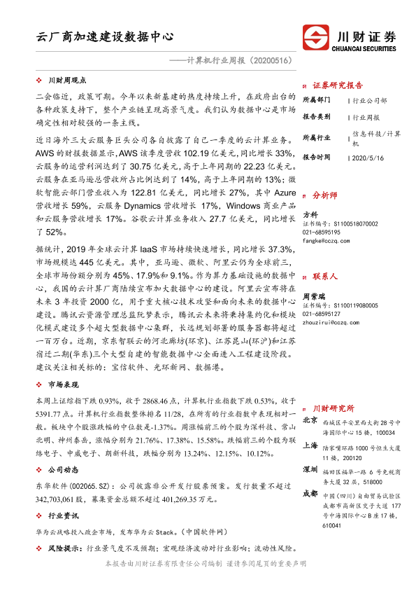 【川财证券】【20200516】计算机行业周报:云厂商加速建设数据中心-10页