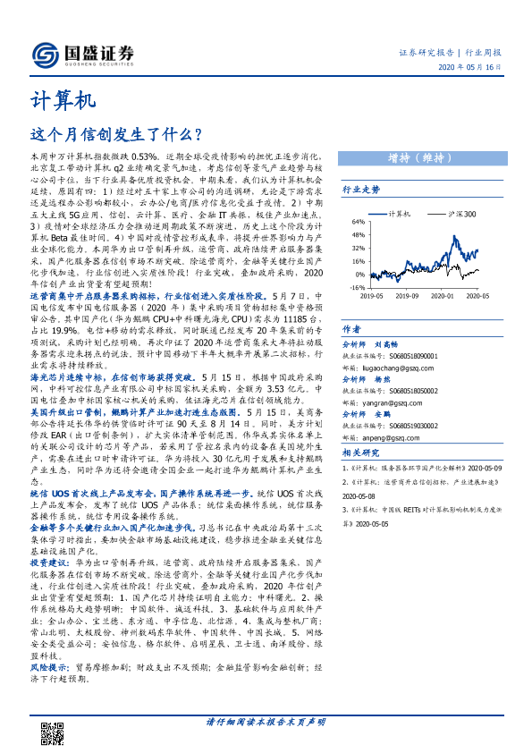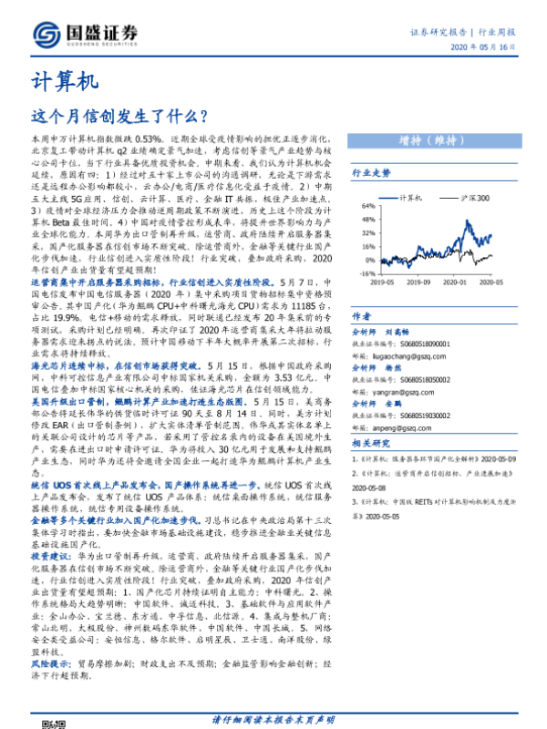 【国盛证券】【20200516】20200516-国盛证券-计算机行业周报:这个月信创发生了什么?-15页