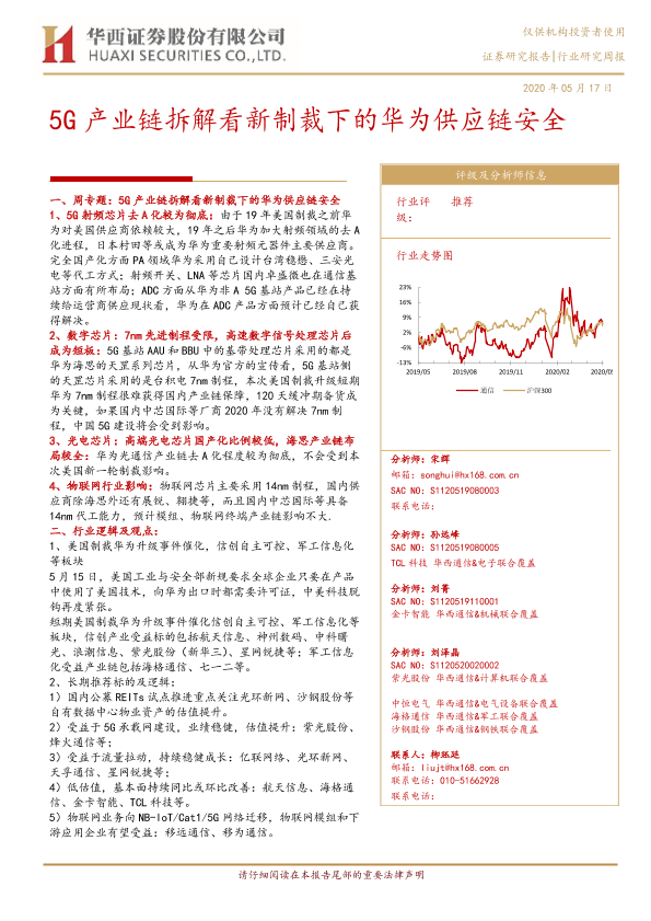 【华西证券】【20200517】20200517-华西证券-通信行业研究周报:5G产业链拆解看新制裁下的华为供应链安全-9页