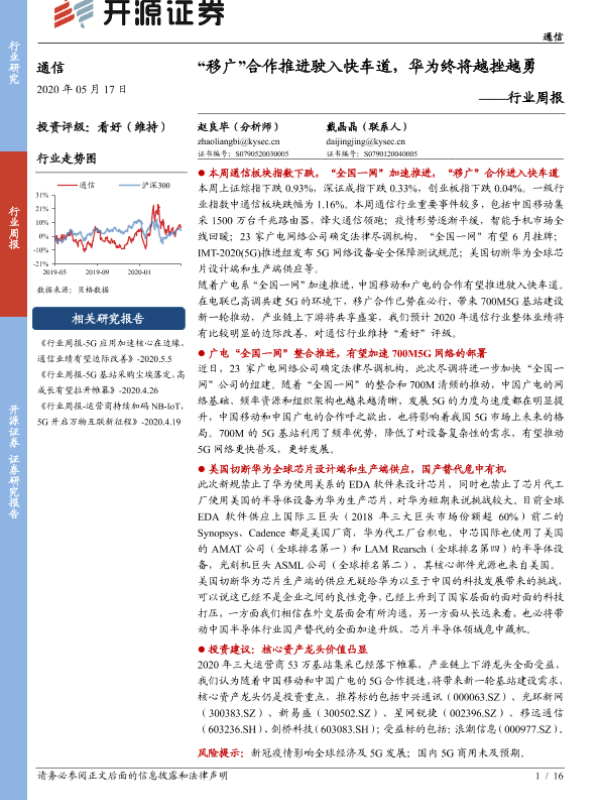 【开源证券】【20200517】20200517-开源证券-通信行业周报:“移广”合作推进驶入快车道,华为终将越挫越勇-16页