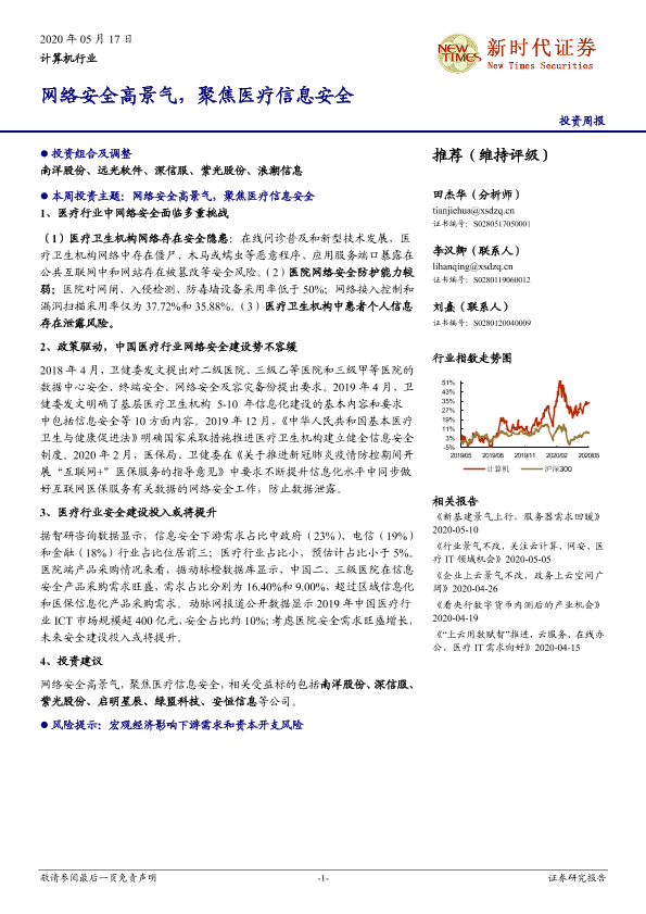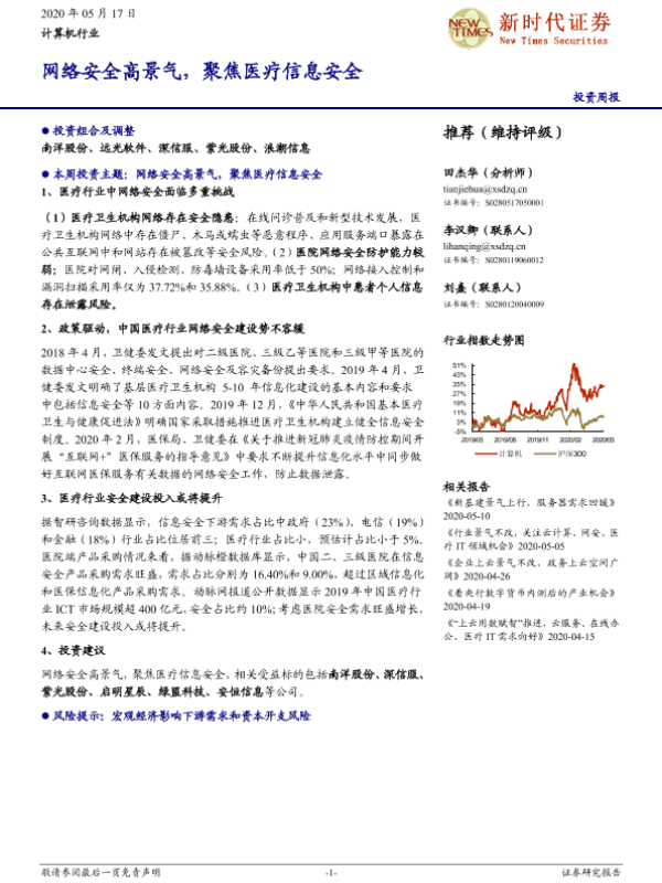 【新时代证券】【20200517】20200517-新时代证券-计算机行业投资周报:网络安全高景气,聚焦医疗信息安全-28页