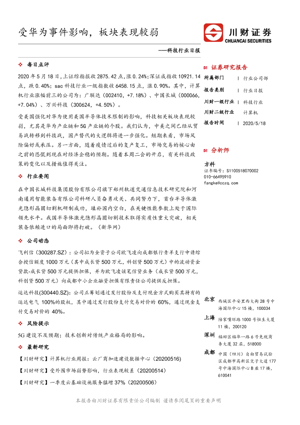 【川财证券】【20200518】科技行业日报:受华为事件影响,板块表现较弱-3页