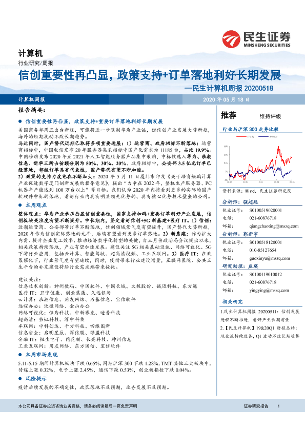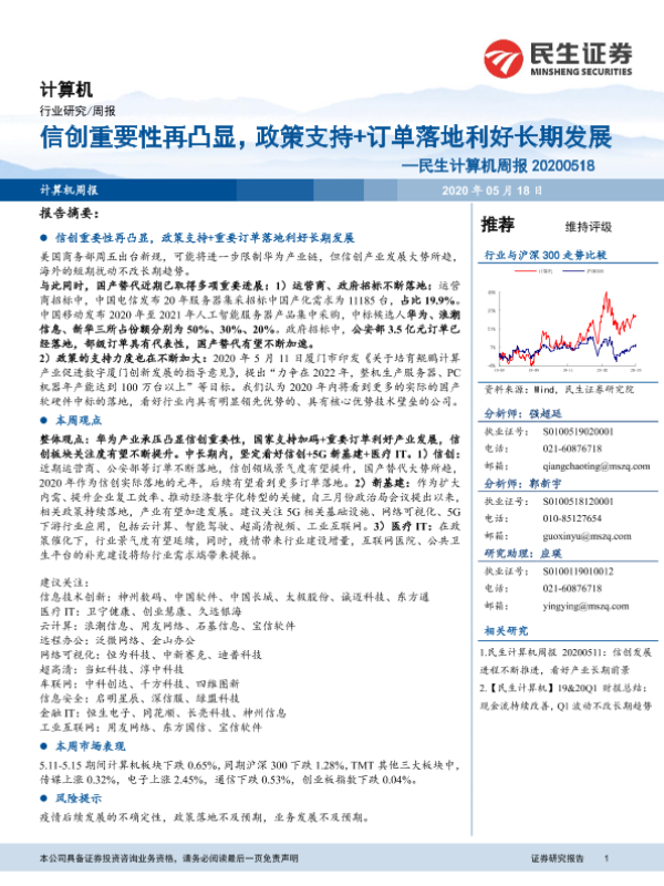 【民生证券】【20200518】20200518-民生证券-民生计算机周报:信创重要性再凸显,政策支持+订单落地利好长期发展-18页