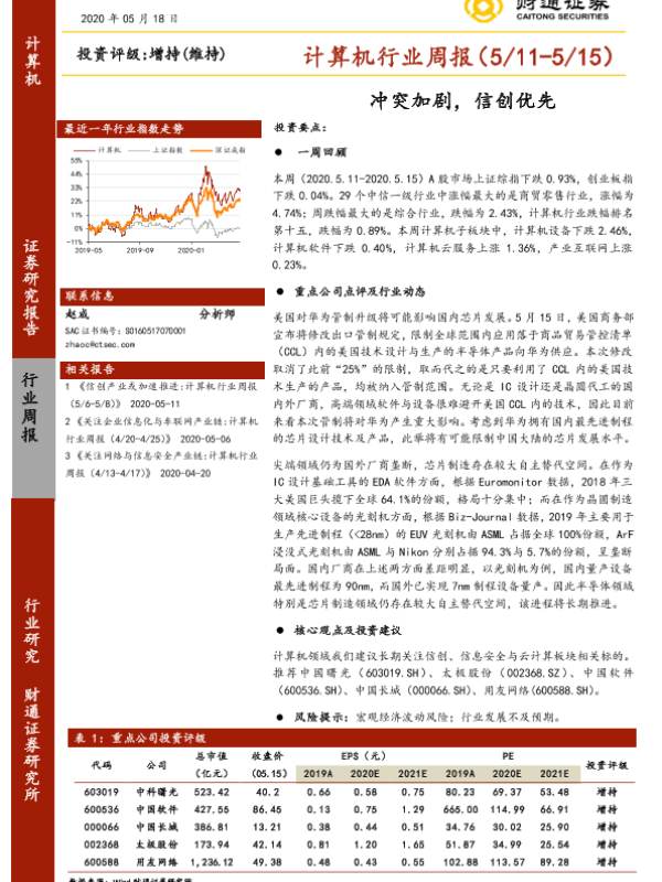 【财通证券】【20200518】计算机行业周报:冲突加剧,信创优先-9页