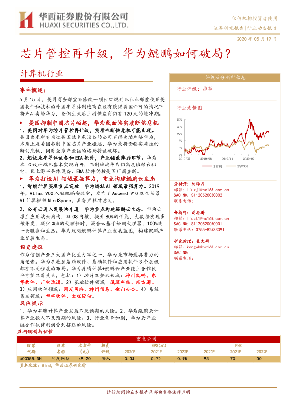 【华西证券】【20200519】计算机行业:芯片管控再升级,华为鲲鹏如何破局?-11页