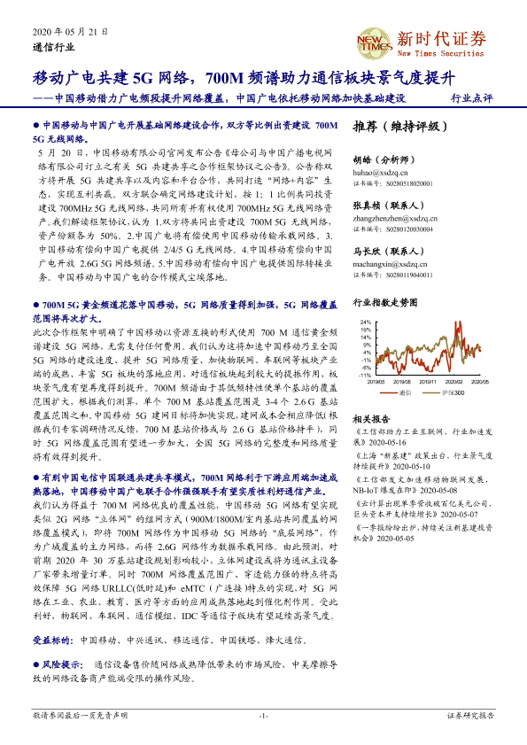 【新时代证券】【20200521】移动广电共建5G网络,700M频谱助力通信板块景气度提升-3页