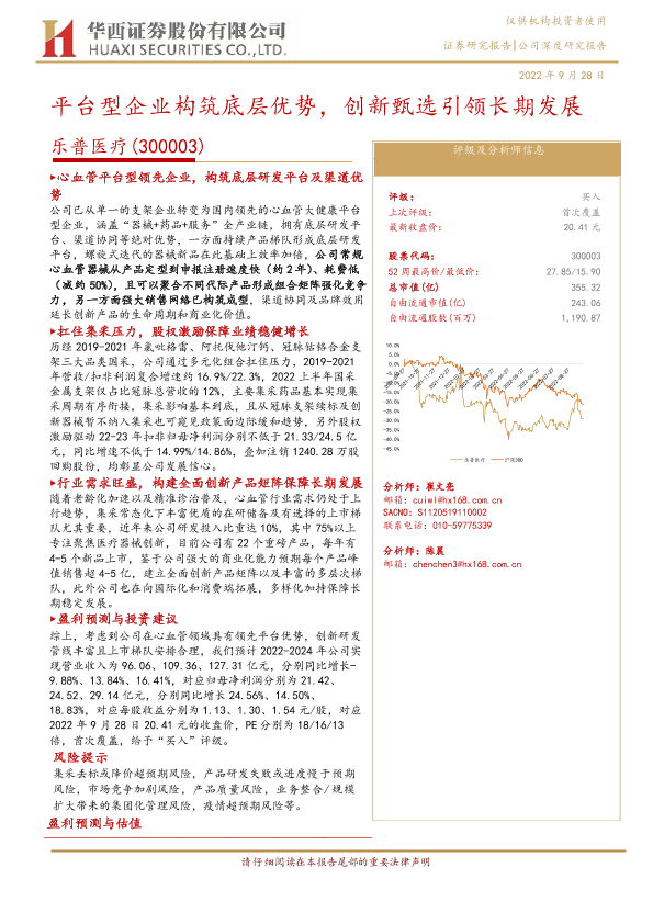 创新研发 平台型企业 心血管医疗 长期发展 集采政策