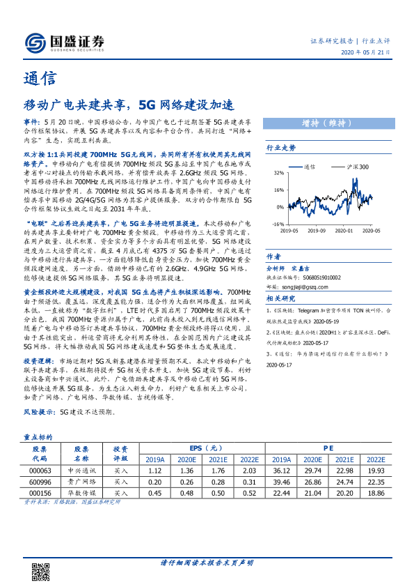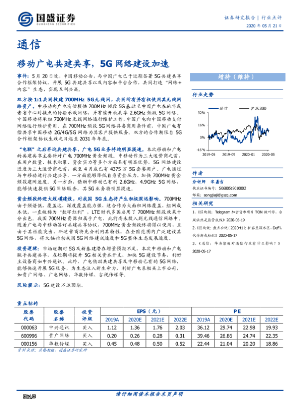 【国盛证券】【20200521】通信:移动广电共建共享,5G网络建设加速-2页