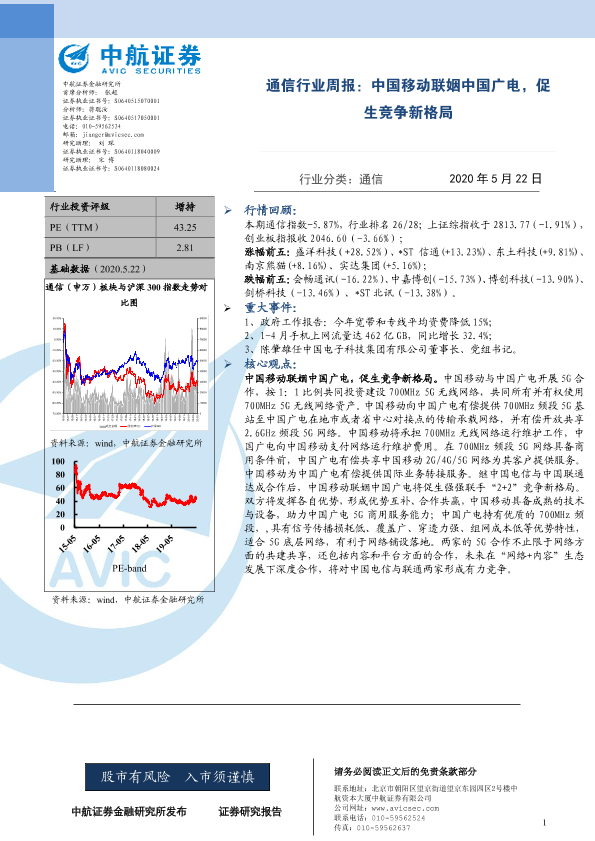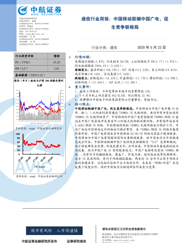 【中航证券】【20200522】20200522-中航证券-通信行业周报:中国移动联姻中国广电,促生竞争新格局-3页