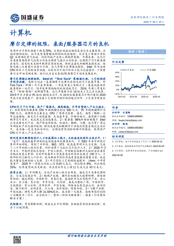 【国盛证券】【20200524】计算机行业周报:摩尔定律的极限,桌面/服务器芯片的良机-17页