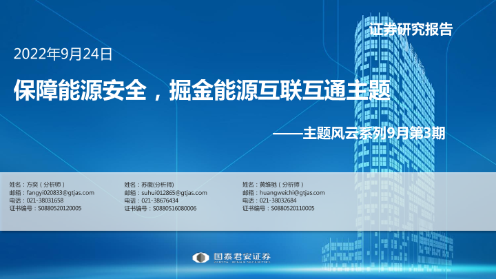 【国泰君安证券】【20220924】主题风云系列9月第3期:保障能源安全,掘金能源互联互通主题-15页