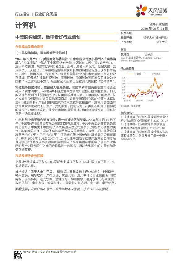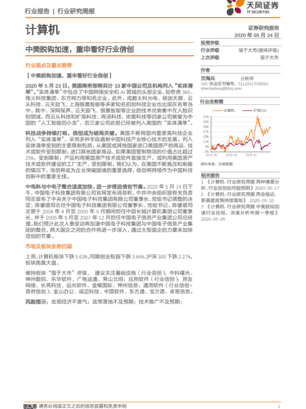 【天风证券】【20200524】计算机行业研究周报:中美脱钩加速,重申看好行业信创-8页
