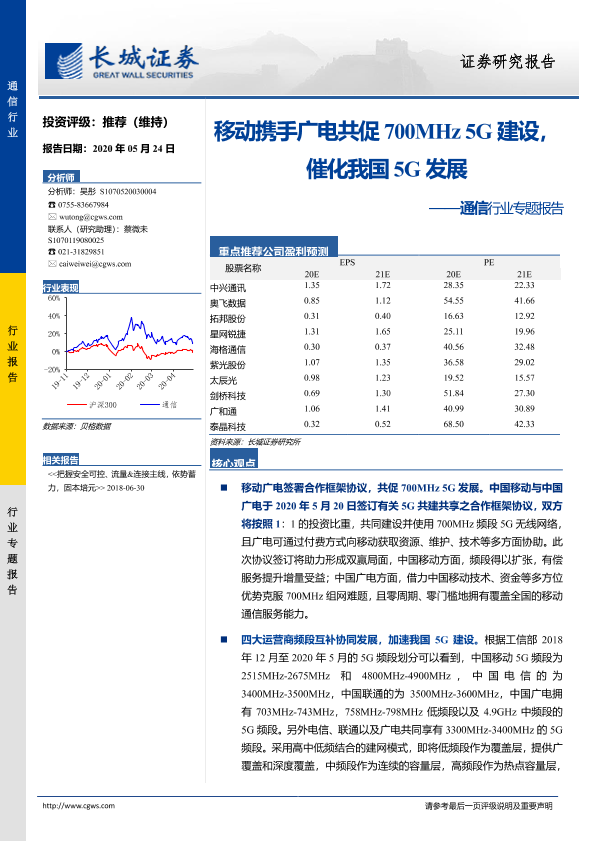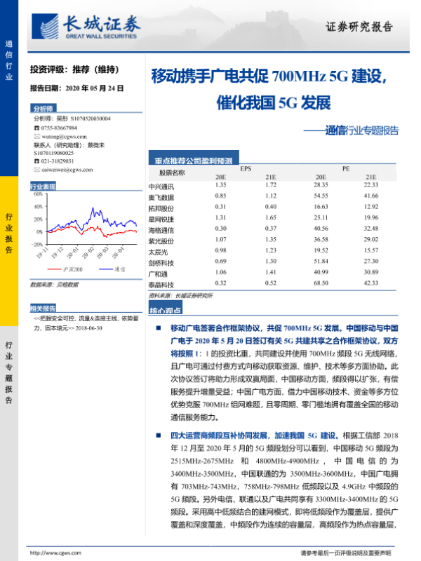 【长城证券】【20200524】移动携手广电共促700MHz5G建设,催化我国5G发展-13页