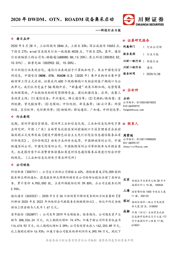 【川财证券】【20200528】2020年DWDM、OTN、ROADM设备集采启动-4页