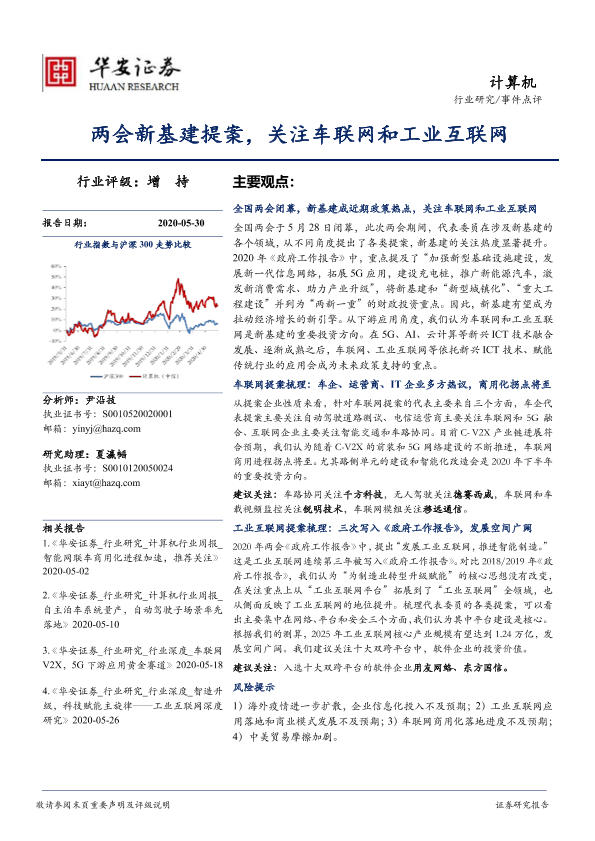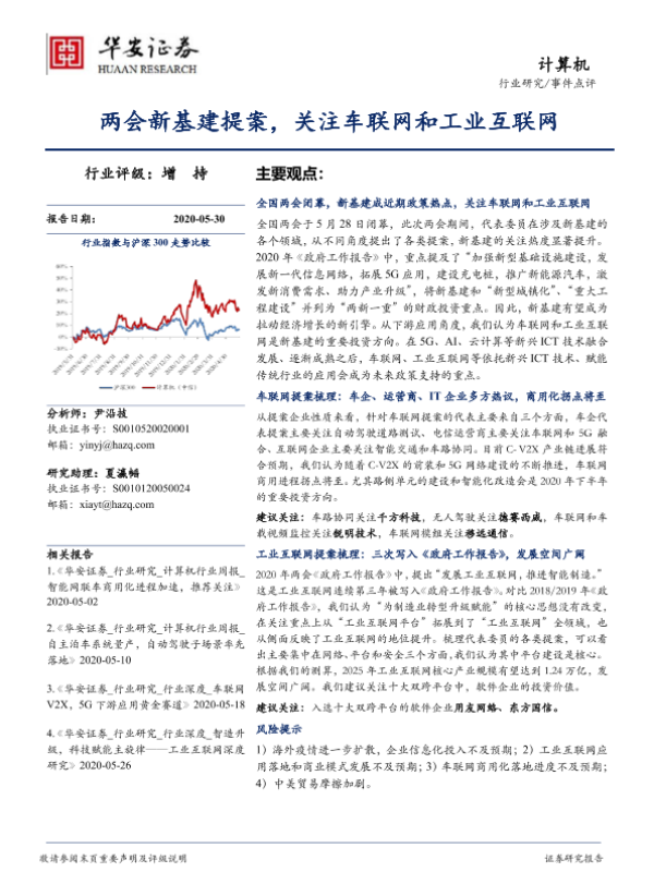 【华安证券】【20200530】计算机:两会新基建提案,关注车联网和工业互联网-10页