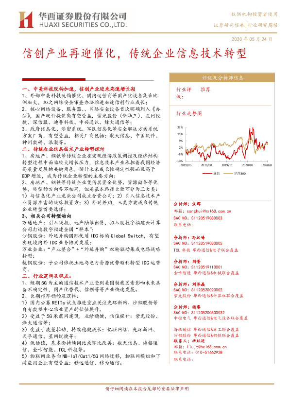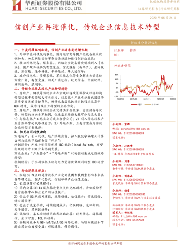 【华西证券】【20200524】通信行业研究周报:信创产业再迎催化,传统企业信息技术转型-6页