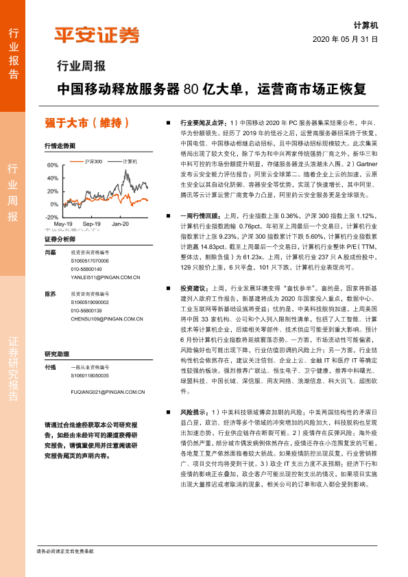 【平安证券】【20200531】20200531-平安证券-计算机行业周报:中国移动释放服务器80亿大单,运营商市场正恢复-6页