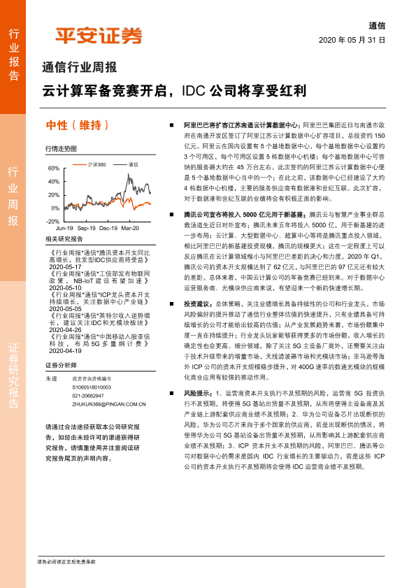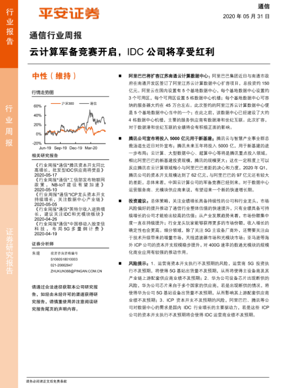 【平安证券】【20200531】通信行业周报:云计算军备竞赛开启,IDC公司将享受红利-5页