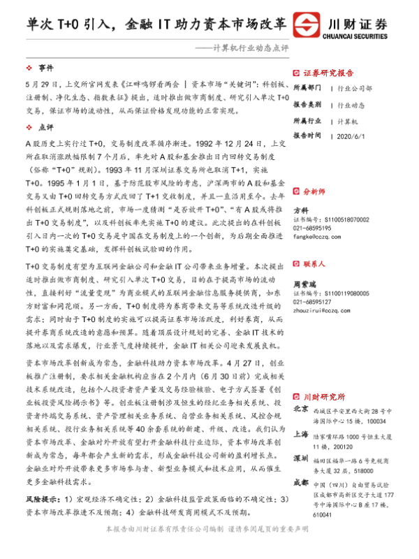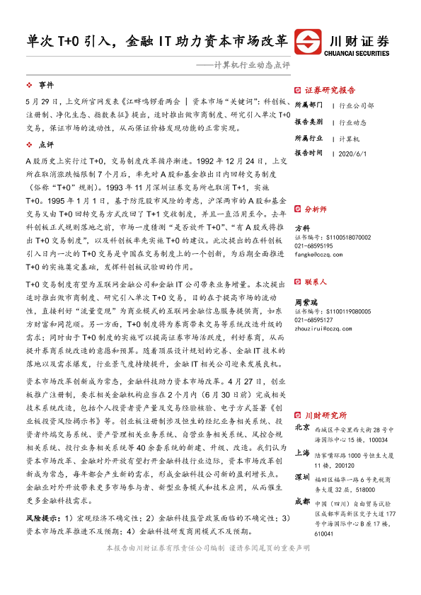 【川财证券】【20200601】单次T+0引入,金融IT助力资本市场改革-2页