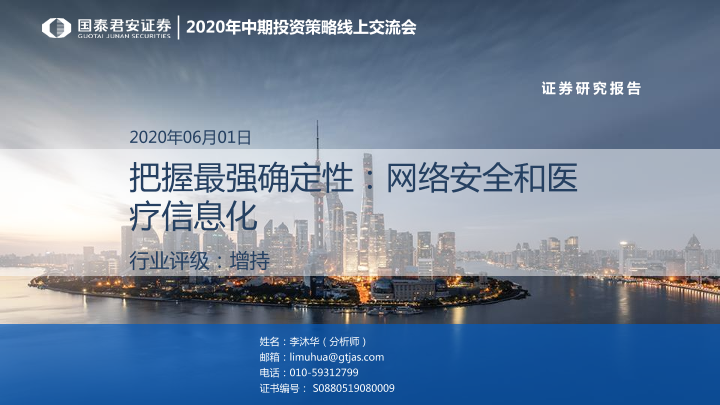 【国泰君安证券】【20200601】2020年中期投资策略线上交流会:把握最强确定性:网络安全和医疗信息化-52页