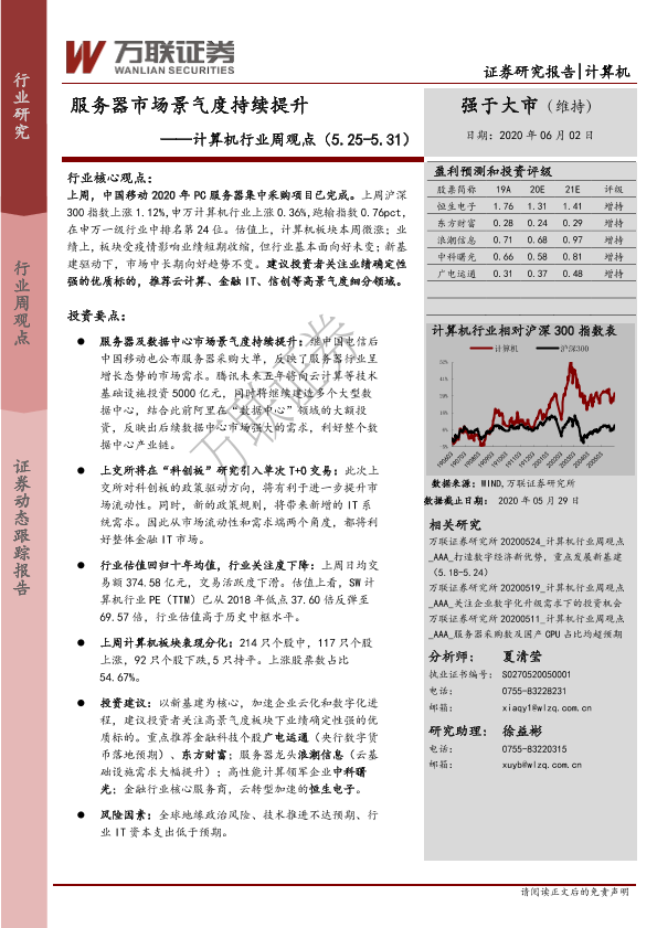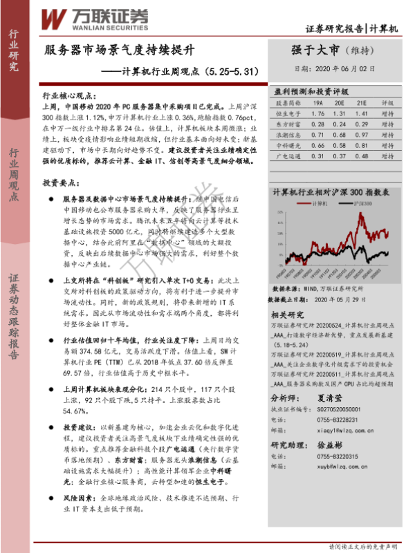 【万联证券】【20200602】20200602-万联证券-计算机行业周观点:服务器市场景气度持续提升-14页