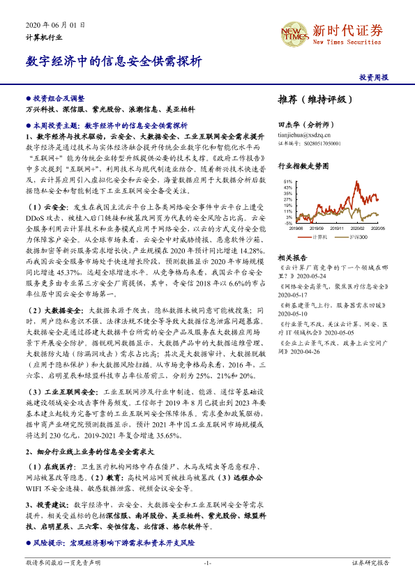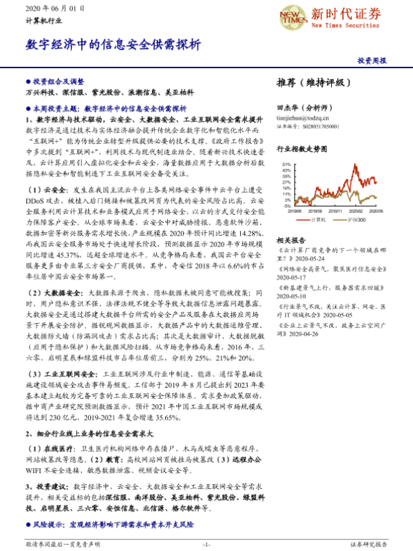 【新时代证券】【20200601】计算机行业投资周报:数字经济中的信息安全供需探析-30页
