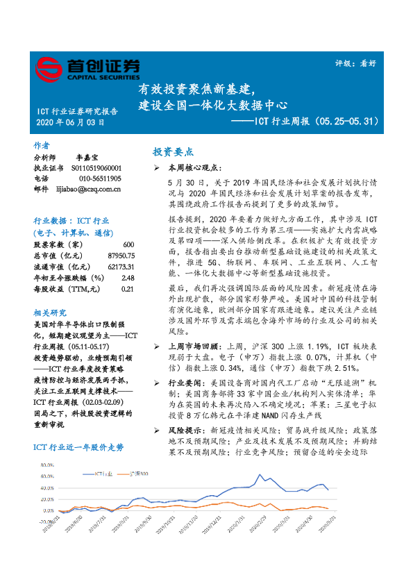 【首创证券】【20200603】20200603-首创证券-ICT行业周报:有效投资聚焦新基建,建设全国一体化大数据中心-14页
