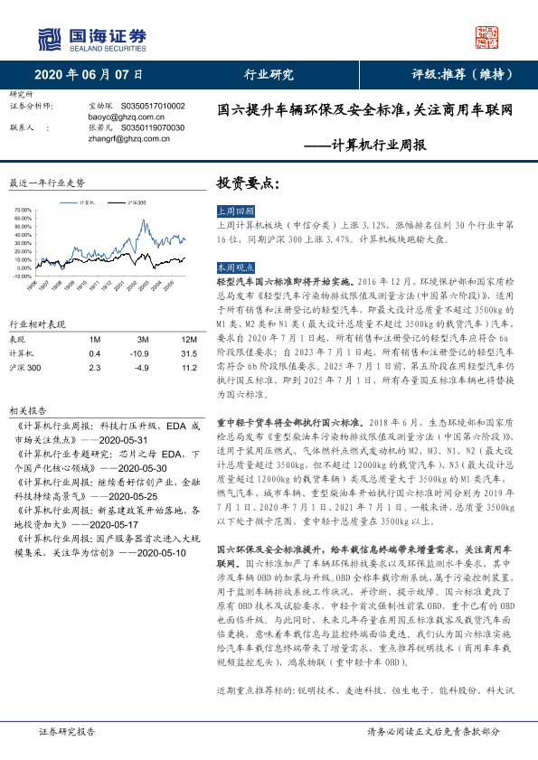 【国海证券】【20200607】计算机行业周报:国六提升车辆环保及安全标准,关注商用车联网-15页