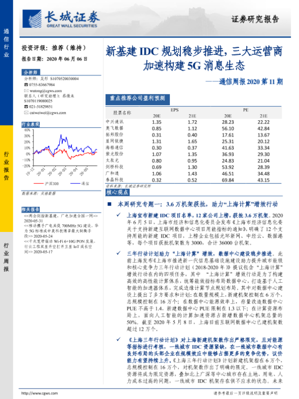 【长城证券】【20200606】通信周报2020第11期:新基建IDC规划稳步推进,三大运营商加速构建5G消息生态-22页