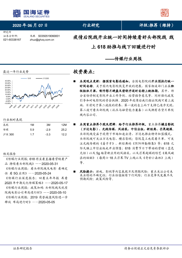 【国海证券】【20200607】疫情后院线开业统一时间持续看好头部院线 线上618助推与线下回暖进行时-18页
