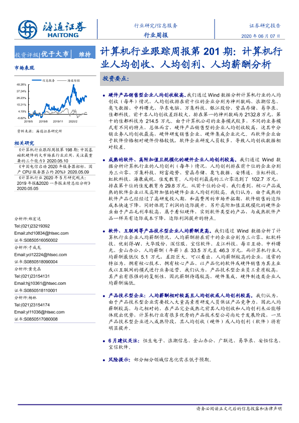 【海通证券】【20200607】计算机行业跟踪周报第201期:计算机行业人均创收、人均创利、人均薪酬分析-8页