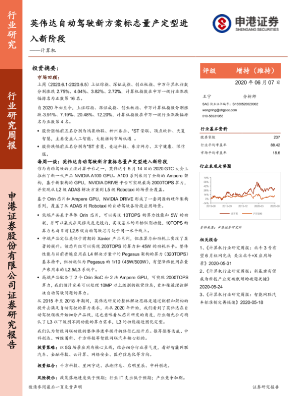【申港证券】【20200607】计算机行业研究周报:英伟达自动驾驶新方案标志量产定型进入新阶段-11页