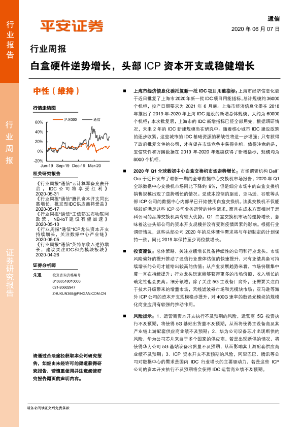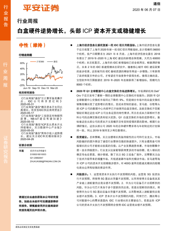 【平安证券】【20200607】通信行业周报:白盒硬件逆势增长,头部ICP资本开支或稳健增长-5页