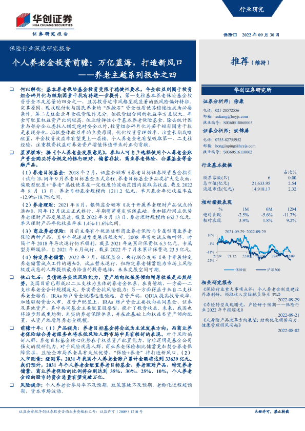 【华创证券】【20220930】保险行业深度研究报告:养老主题系列报告之四,个人养老金投资前瞻,万亿蓝海,打造新风口-37页
