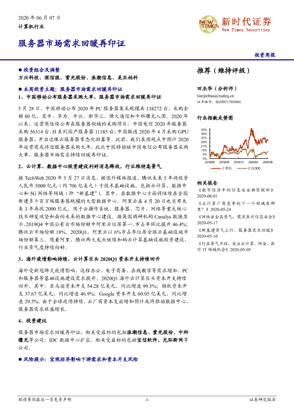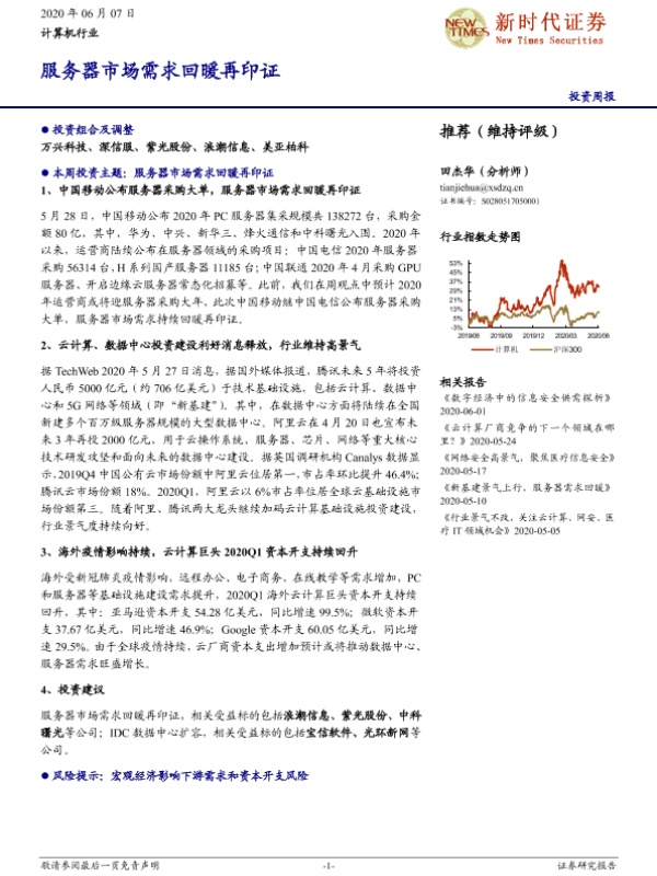 【新时代证券】【20200607】计算机行业投资周报:服务器市场需求回暖再印证-20页