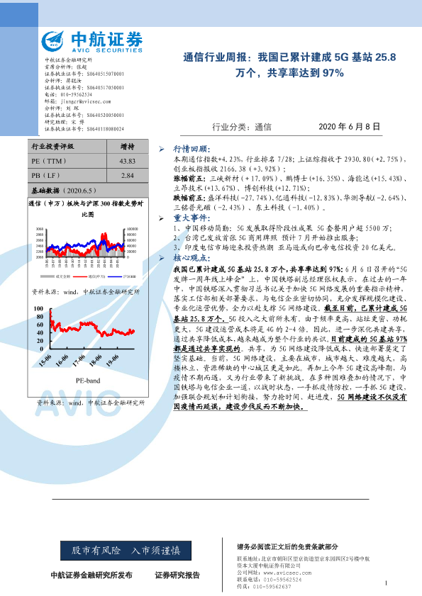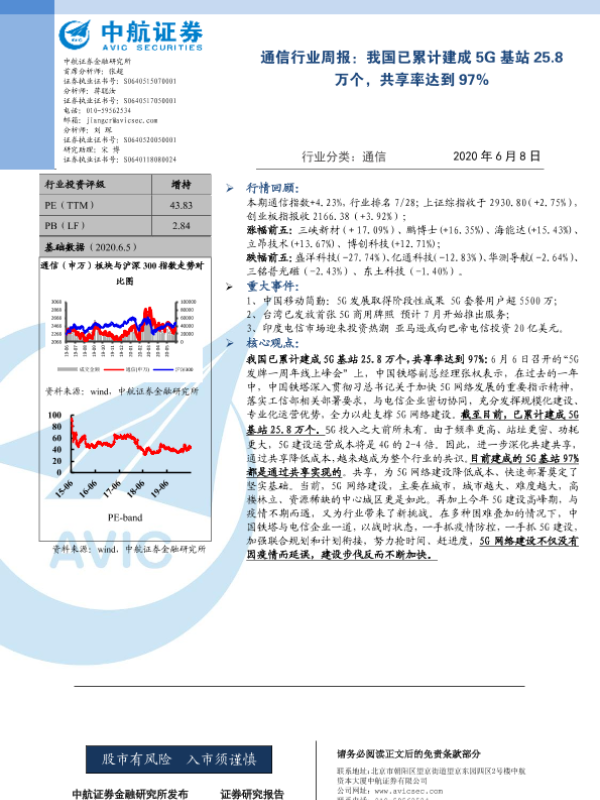 【中航证券】【20200608】通信行业周报:我国已累计建成5G基站25.8万个,共享率达到97%-3页