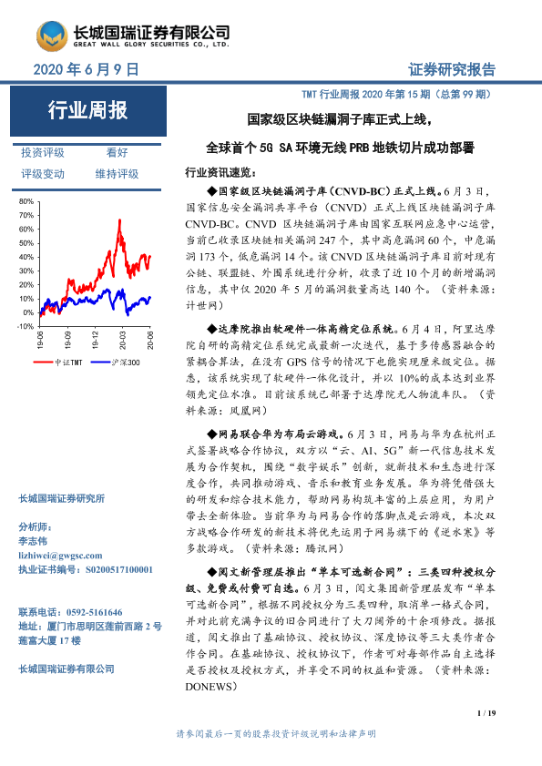 【长城国瑞证券】【202006】TMT行业周报2020年第15期(总第99期):国家级区块链漏洞子库正式上线,全球首个5G SA环境无线PRB地铁切片成功部署-19页