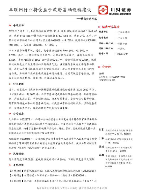 【川财证券】【20200611】科技行业日报:车联网行业将受益于政府基础设施建设-3页