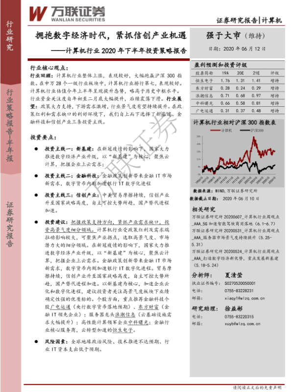 【万联证券】【20200612】计算机行业2020年下半年投资策略报告:拥抱数字经济时代,紧抓信创产业机遇-20页