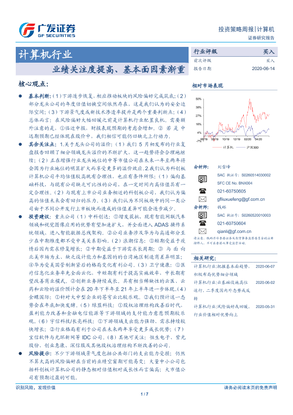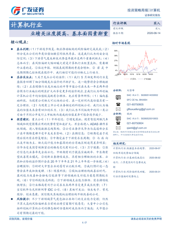 【广发证券】【20200614】计算机行业投资策略周报:业绩关注度提高、基本面因素渐重-7页
