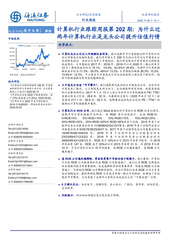 【海通证券】【20200614】计算机行业跟踪周报第202期:为什么近两年计算机行业是龙头公司提升估值行情-5页