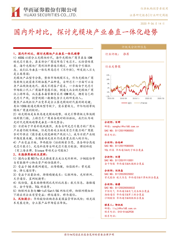 【华西证券】【20200614】20200614-华西证券-通信行业研究周报:国内外对比,探讨光模块产业垂直一体化趋势-9页