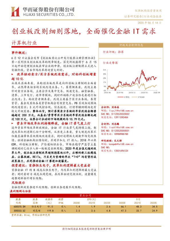 【华西证券】【20200614】20200614-华西证券-计算机行业动态报告:创业板改则细则落地,全面催化金融IT需求-12页