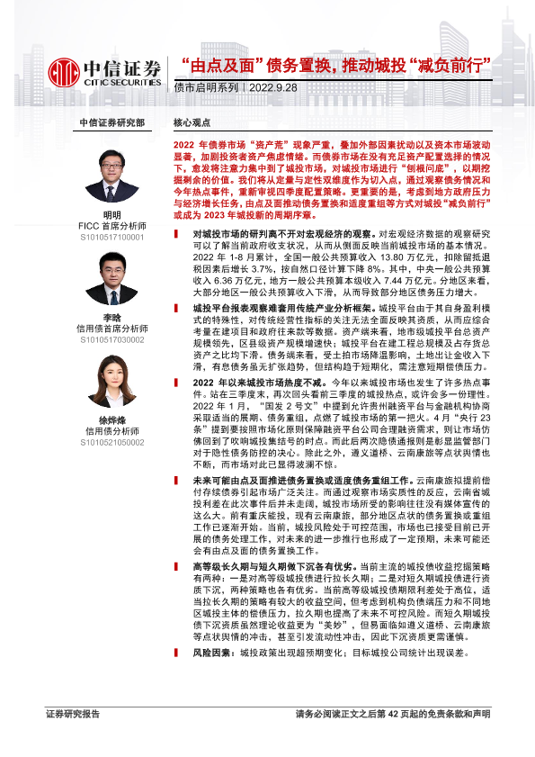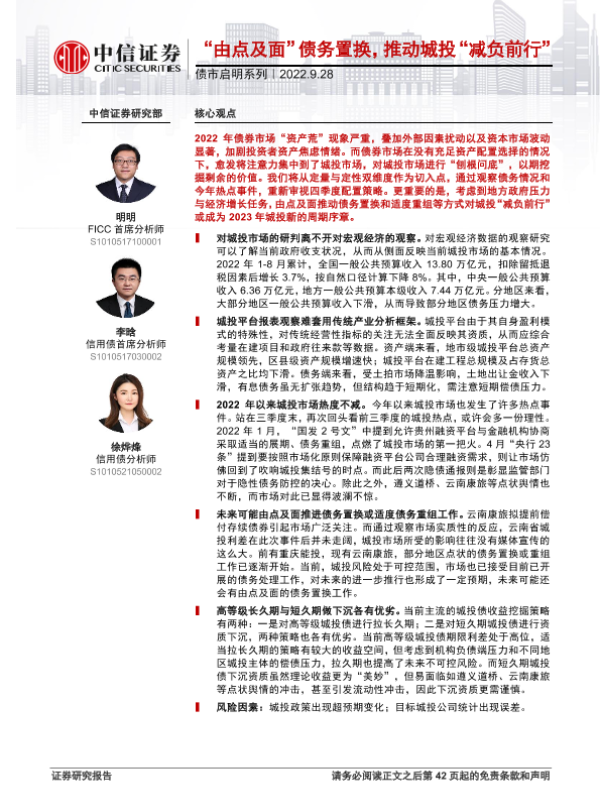 【中信证券】【20220928】债市启明系列:“由点及面”债务置换,推动城投“减负前行”-43页