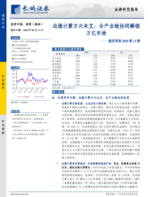 【长城证券】【20200614】通信周报2020第12期:边缘计算方兴未艾,全产业链协同解锁万亿市场-30页