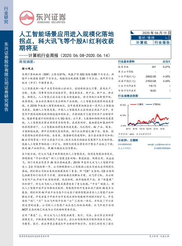 【东兴证券】【20200615】20200615-东兴证券-计算机行业周报:人工智能场景应用进入规模化落地拐点,科大讯飞等个股AI红利收获期将至-20页