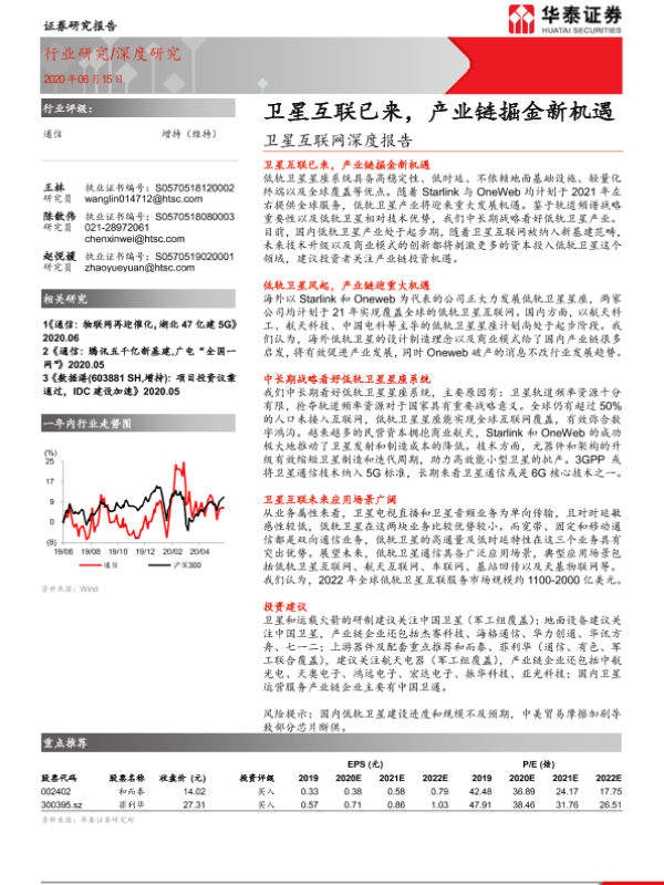 【华泰证券】【20200615】卫星互联网深度报告:卫星互联已来,产业链掘金新机遇-34页
