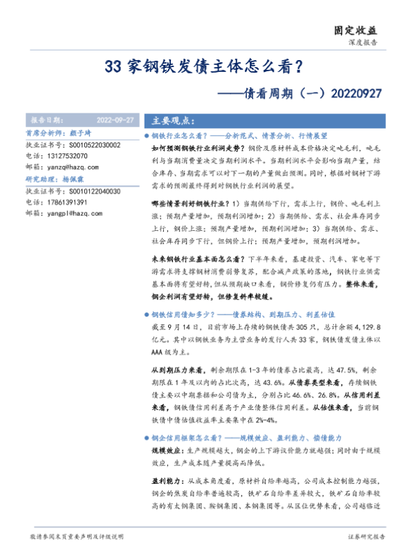 【华安证券】【20220927】债看周期(一):33家钢铁发债主体怎么看?-29页