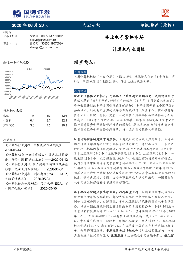 【国海证券】【20200620】计算机行业周报:关注电子票据市场-14页